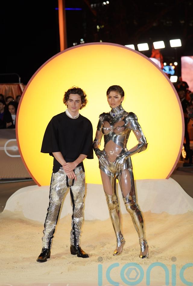 Zendaya was joined on the red carpet – which was actually made of sand – by her Dune co-stars. American actor Timothée Chalamet, who plays the lead Paul Atreides in the film, wore an ensemble by French designer Haider Ackermann.