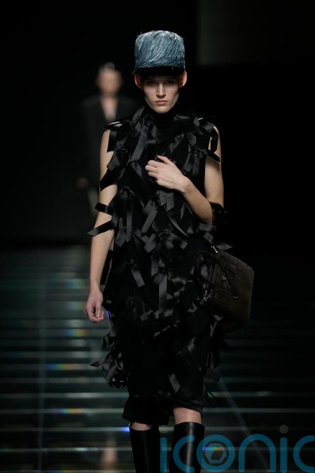 The opening look of the show was a black shift midi dress with silk black bows sewn all over – which fast the motif of the collection.