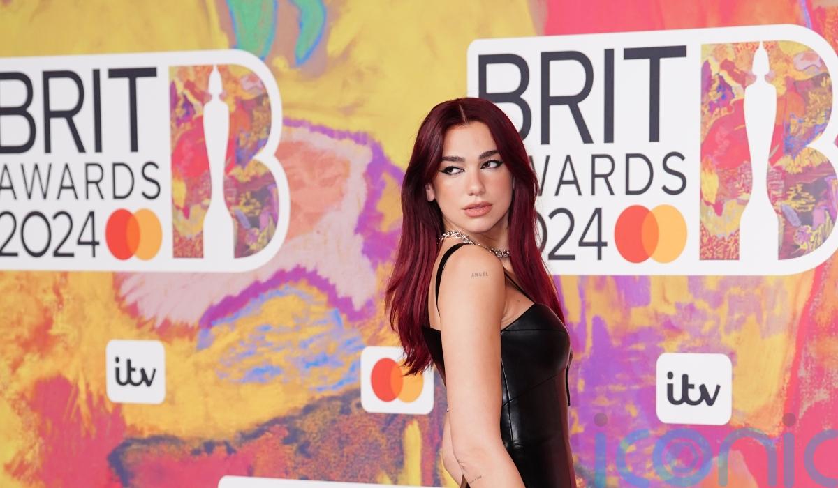 Dua Lipa sported a racy plunging leather-look gown as she arrived on the red carpet at the Brit Awards.