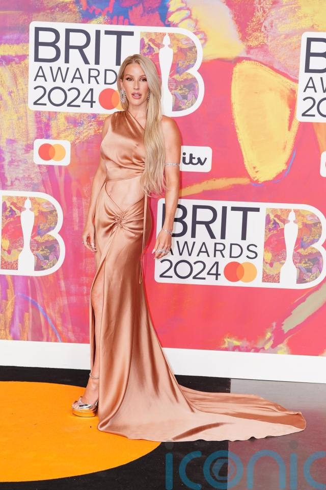 Ellie Goulding, who will also perform at the show, opted for a slinky asymmetric peach satin dress for the star-studded event.