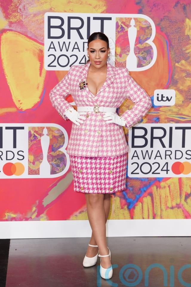 Former X Factor star Rebecca Ferguson wore a pink houndstooth in different shades, in keeping with the many stars who have hit award ceremonies so far in pink – having been inspired by the Barbie film.