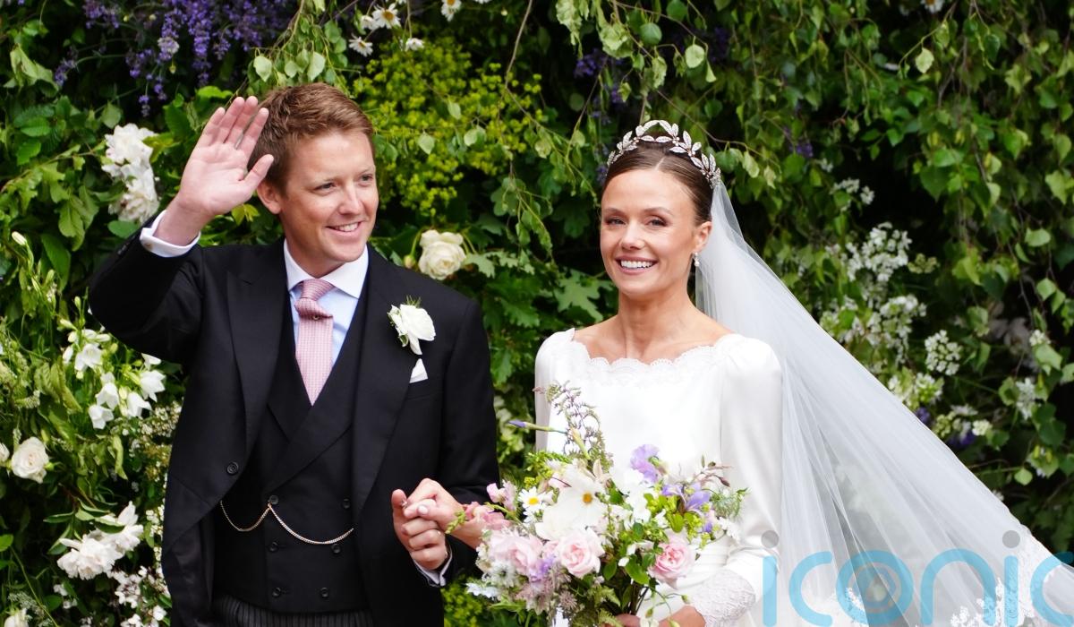 Following the service, the happy couple waved to spectators before heading off to a private reception at the Duke’s family home, Eaton Hall, nearby.