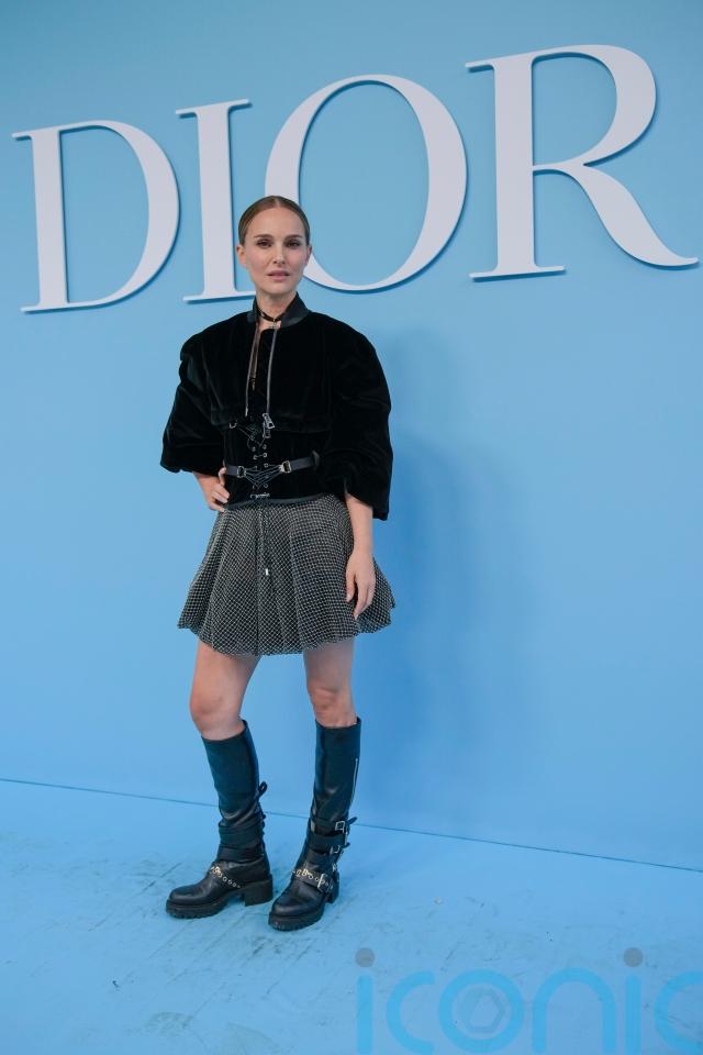 Supporting stars on the front row included former teacher and wife of President Emmanuel Macron, Brigitte Macron, as well as ex-face of Miss Dior, Natalie Portman, 43, who showcased passion and practicality in black leather biker boots, a silver studded skirt and a plush velvet jacket with corset detailing.