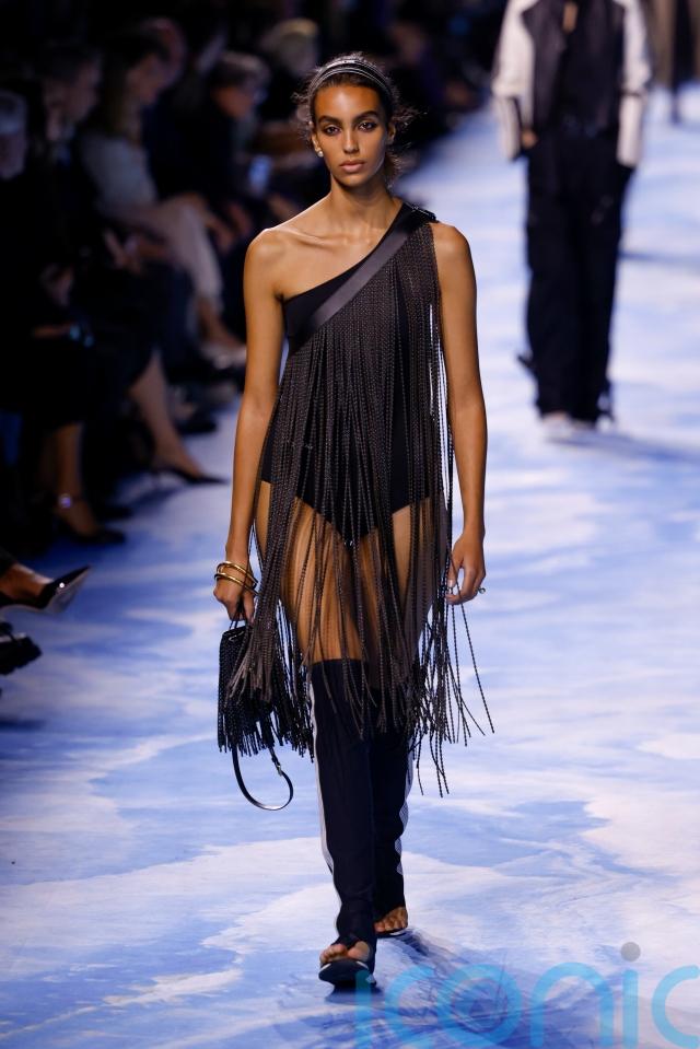 Dior’s use of beaded fringe and similarly adorned wrap skirts exemplified the collection’s focus on movement, that swished and shimmered with every step.