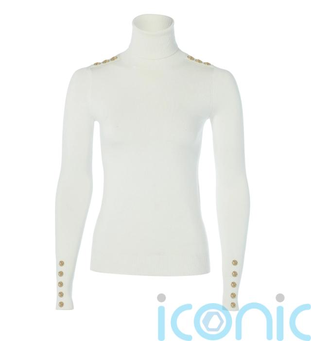 Holland Cooper Buttoned Knit Roll Neck in Cream, £99