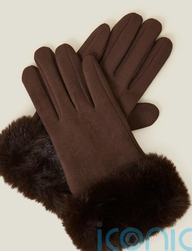 Accessorize Suedette Faux Fur Cuff Gloves Brown, £12