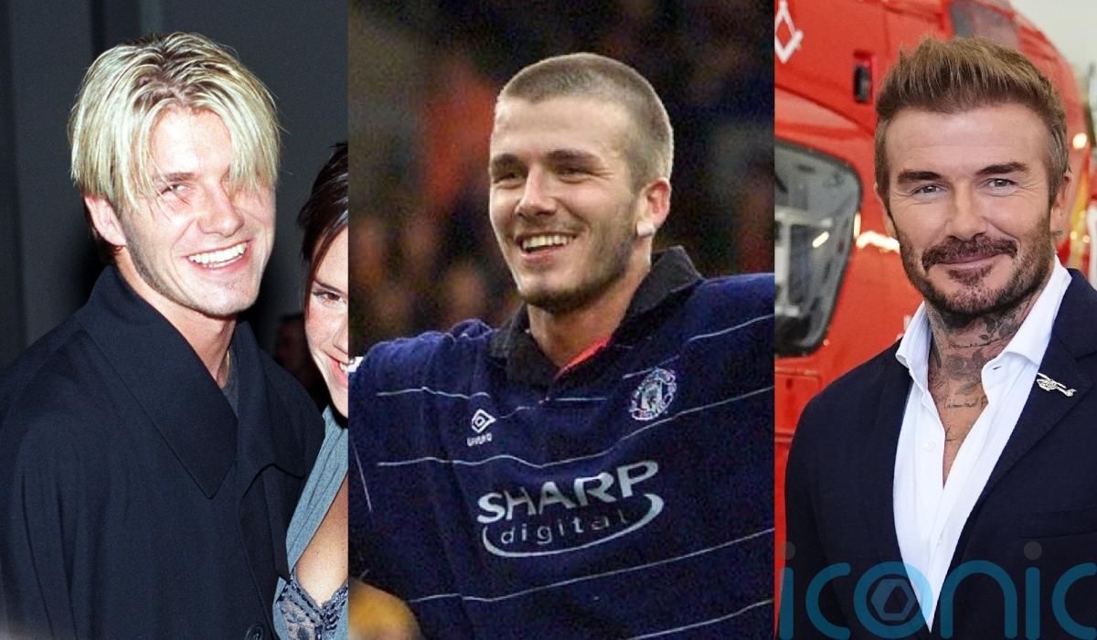 At 50, Beckham has returned to slightly longer locks, styling his sandy blonde hair brushed up with plenty of height.