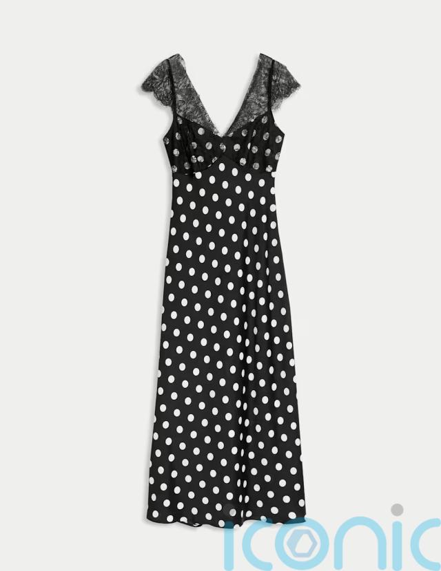 M&S Polka Dot V-Neck Lace Detail Midaxi Tea Dress, £49.50