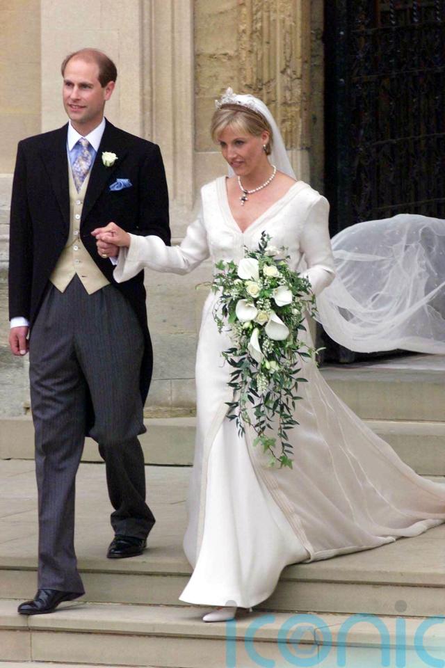 When the late Queen’s youngest son Prince Edward married public relations executive Sophie Rhys-Jones in June 1999, she wore a simple, long-sleeved gown by Samantha Shaw.