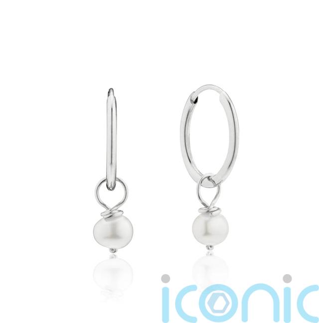 Lily & Roo Solid White Gold Small Pearl Drop Hoop Earrings, £95