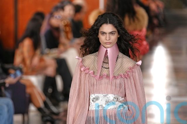 For this season, he balanced elegance with experimentation, opening with a sheer-panelled corset set, which set the tone for the collection, signalling that structure and lightness would co-exist throughout.