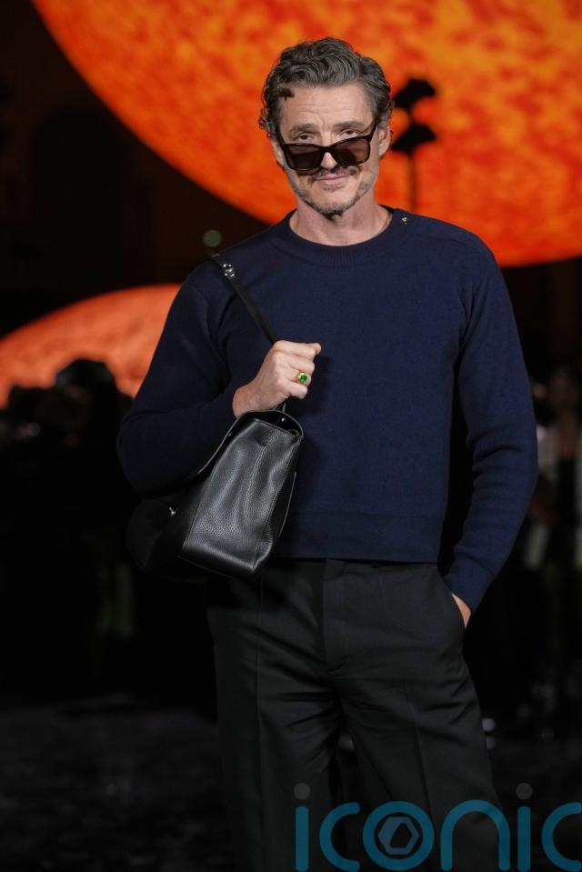 Materialists actor Pedro Pascal kept things simple and chic with a navy jumper and black bag. The 50-year-old accessorised with a green emerald ring and shades.