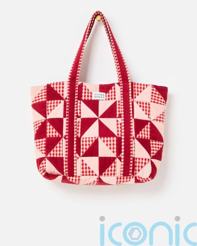 Oliver Bonas Emily Red & Pink Patchwork Corduroy Cotton Tote Bag, £52