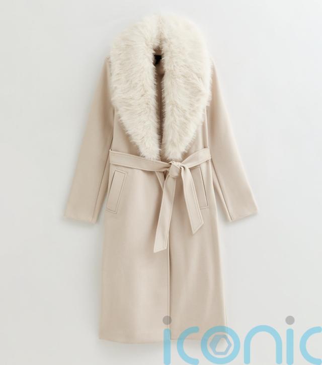 New Look Stone Faux Fur Collar Wrap Coat, £59.99 (was £79.99)