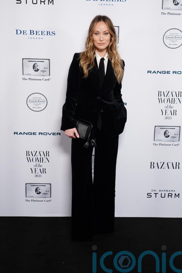 Actress and director Olivia Wilde, 41, wore a velvet Saint Laurent suit, adapted from the label’s famous “Le Smoking” tuxedo jacket that was launched in 1966 and became a symbol of female autonomy in the late Sixties and Seventies.