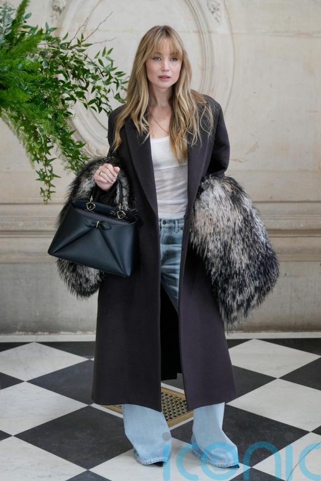 Brand ambassador Jennifer Lawrence took Anderson’s ethos of combining casual and couture, sitting front row in jeans and a vest, with a structured wool coat and fur stole.