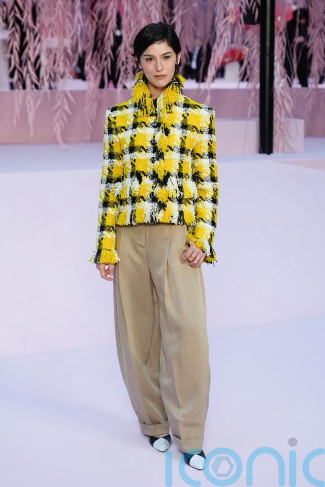 Sitting front row, singer Dua Lipa brought sunshine to Paris in a yellow, black and orange two-piece, while singer Gracie Abrams also opted for summer brights in a yellow tweed jacket.