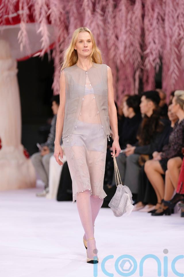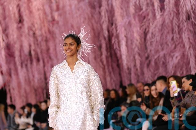 Based on the runway and this week’s previous haute couture shows, it seems an emerging trend may be millennium pink, alongside sheer tulle, peplum trims and airy, weightless tailoring.