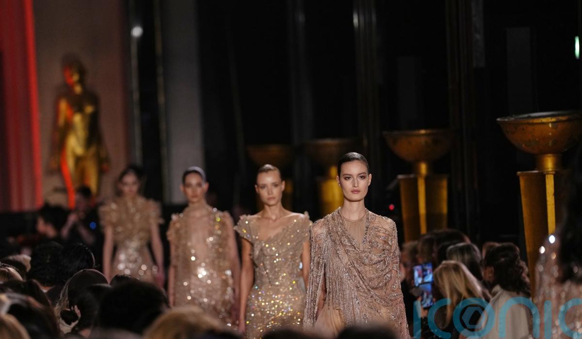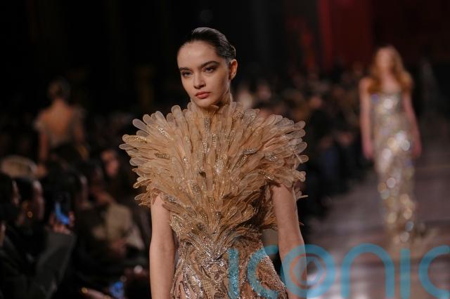 The show opened onto a moonlit runway, where blush, bronze and warm desert tones dominated the collection. These hues continued the colour trends that have defined this couture week, with molten golds, rich chocolates and soft roses shimmering beneath the lights.