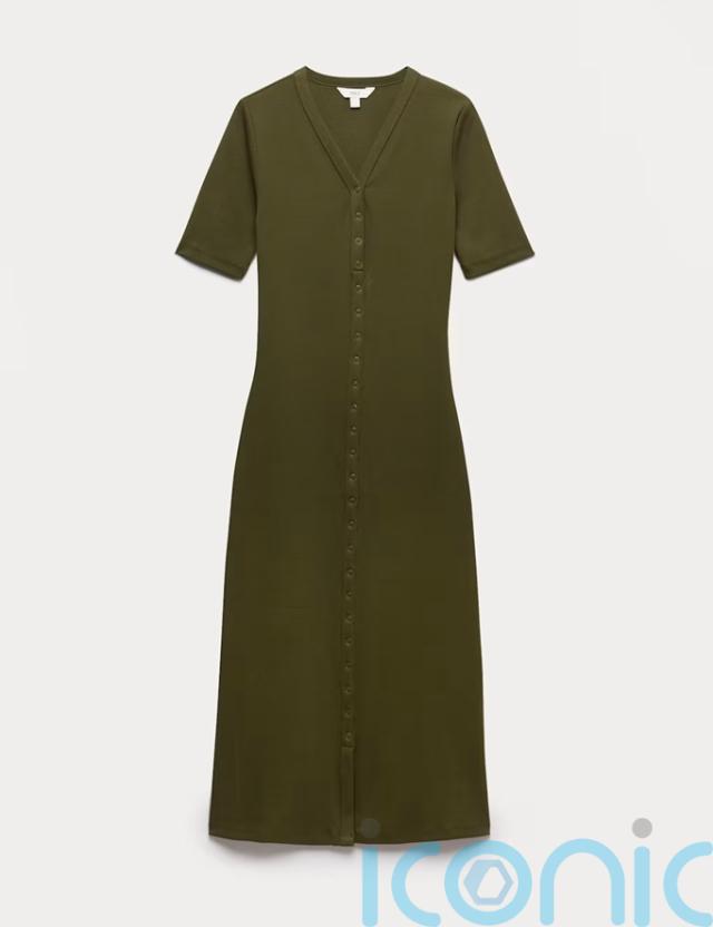 M&S Cotton Rich Ribbed V-Neck Midi Column Dress, £33