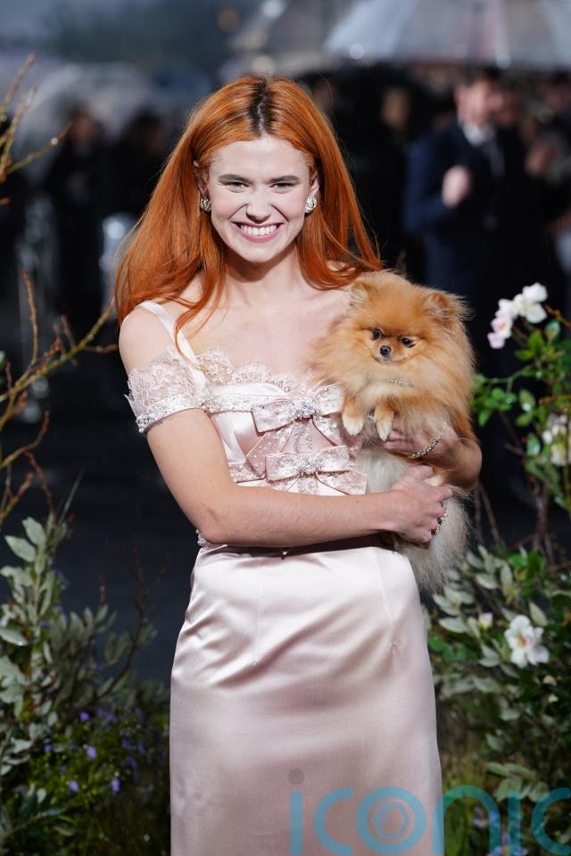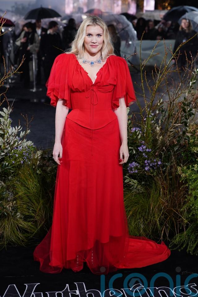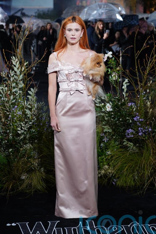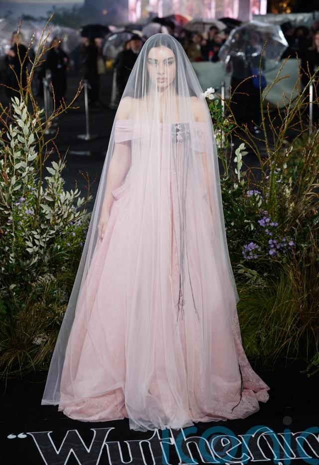 Alison Olivier, who plays Edgar’s younger sister Isabella Linton, also leant into dusty pink – a big colour on spring/summer 2026’s runways – wearing a silk and lace column dress with embellished bows adorning the bodice.