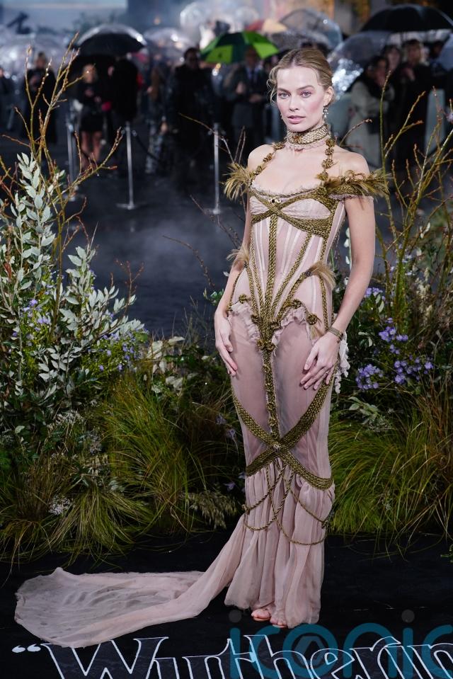 Coming to UK cinemas on February 13, Robbie celebrated in a sheer corseted Gothic gown with moss green, blooming seams and a matching choker. It is a British label that she has worn since arriving in London for the film’s press tour.
