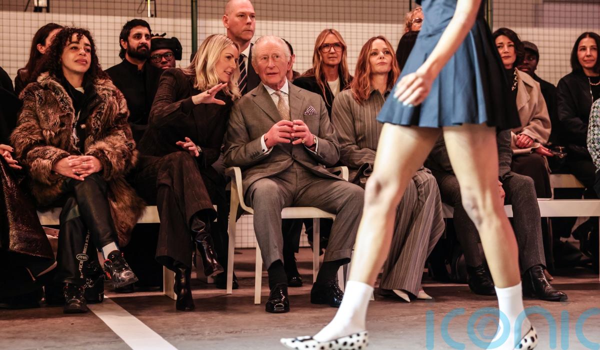King Charles III stepped out in a heather grey single-breasted suit to open London Fashion Week, taking his place front row at Tolu Coker’s autumn/winter show at 180 Studios in central London.