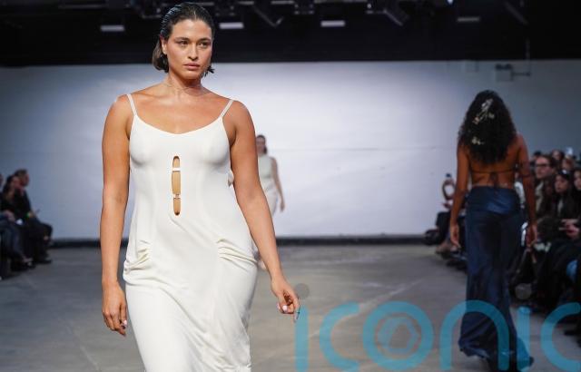 The Brazilian-born designer presented a runway cast with visible size diversity, from XS through to fuller, curvy models, all wearing the same fluid, body-conscious silhouettes.
