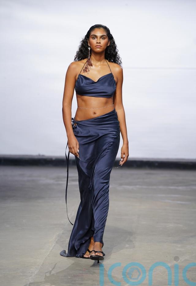The fabric clung without constricting, creating subtle shaping through drape rather than rigid internal structure. On a curvier model, the same piece emphasised natural contours, the cut-out drawing attention to the waist and midriff without apology.