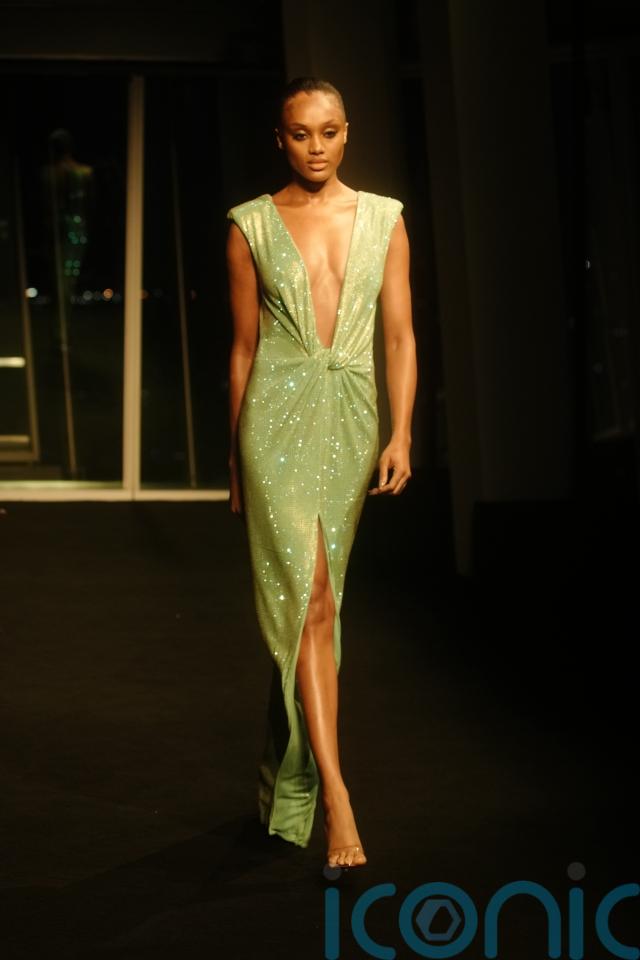 Backless gowns, plunging necklines and high-cut bodysuits dominated, with sheer panels and strategic cut-outs forming a recurring motif. One pale green, sequin-drenched gown featured a deep V neckline gathered at the waist and a front slit that revealed just enough leg, merging red-carpet polish with beach-club ease.