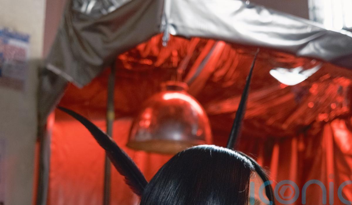 “The inspiration for the look is pulling from south-east Asian identity, drawing from the iconic head-dresses of the Peking opera,” Cofone explained to the Press Association. “In opera they use ostrich feathers as an extension of the performance […] so we wanted to bring that into the hair. You’ll see these beautiful moments where they have ostrich feathers and we wanted to do it in a simple modern way – the hair is glass straight.”