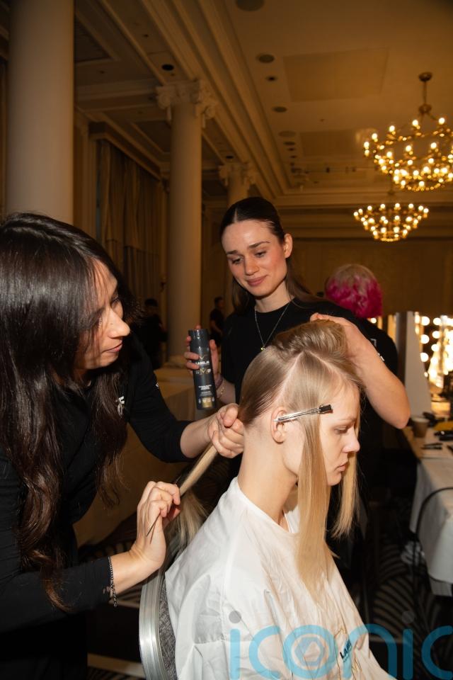 Toni and Guy global creative director Cos Sakkas led the hair team in crafting a look that mirrored the Irish designer’s powerful tailoring. Hair was smoothed to a high-shine finish before being drawn into a low, sculpted chignon at the nape.