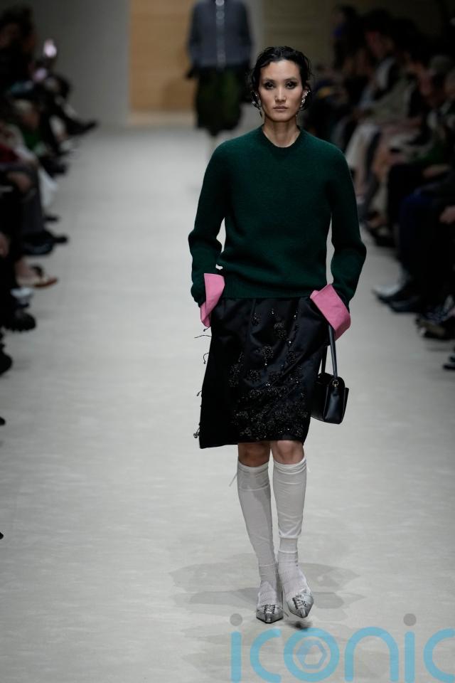 Styled with pointed kitten heels – a Prada signature – and knee-length skirts, they gave the collection a prim, almost schoolgirl inflection, albeit subverted with more slouchy silhouettes.