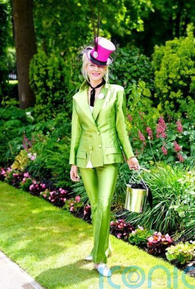 This racegoer looks stunning in a baby pink gown and feathery hat that is both Old Hollywood and so Ascot. Her dramatic nails and bracelet tie the look together for a thoroughly modern race day vibe.