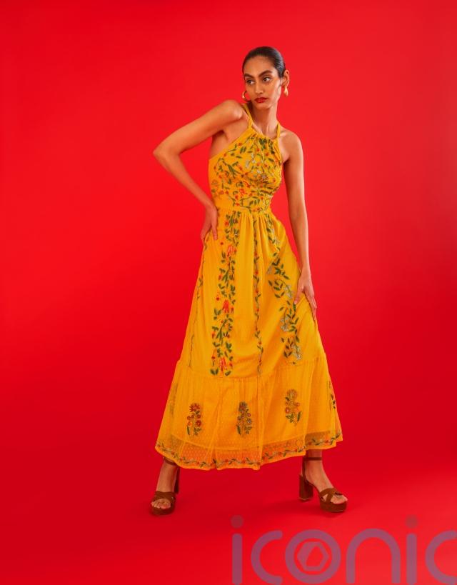 Monsoon Harlow Halter Embroidered Dress Yellow, £150 (shoes stylist’s own)