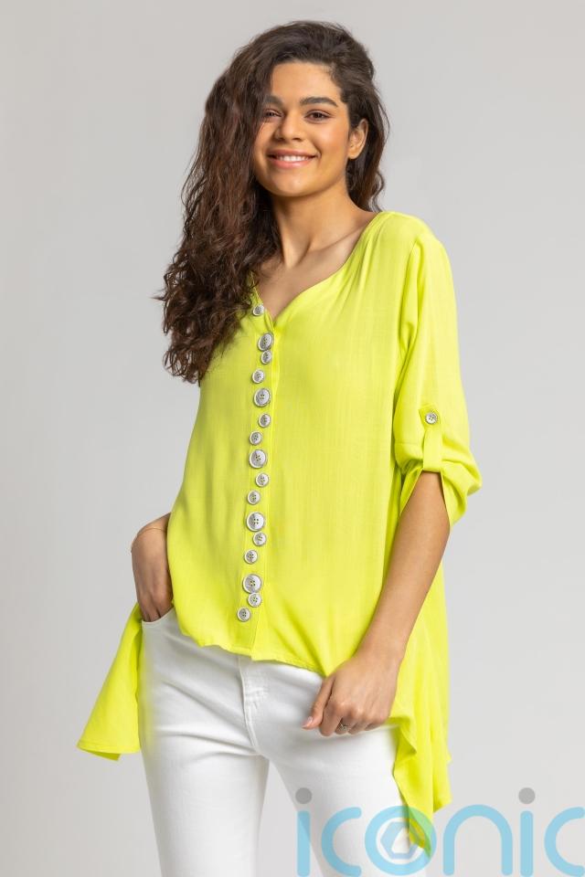 Roman Lime Asymmetric Abstract Button Detail Top, £26 (was £30);White Denim Stretch Jegging, £25