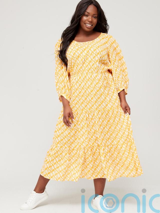 V by Very Curve Long Sleeve Maxi Printed Scoop Neck Midi Dress, £22 (was £35; shoes stylist’s own)