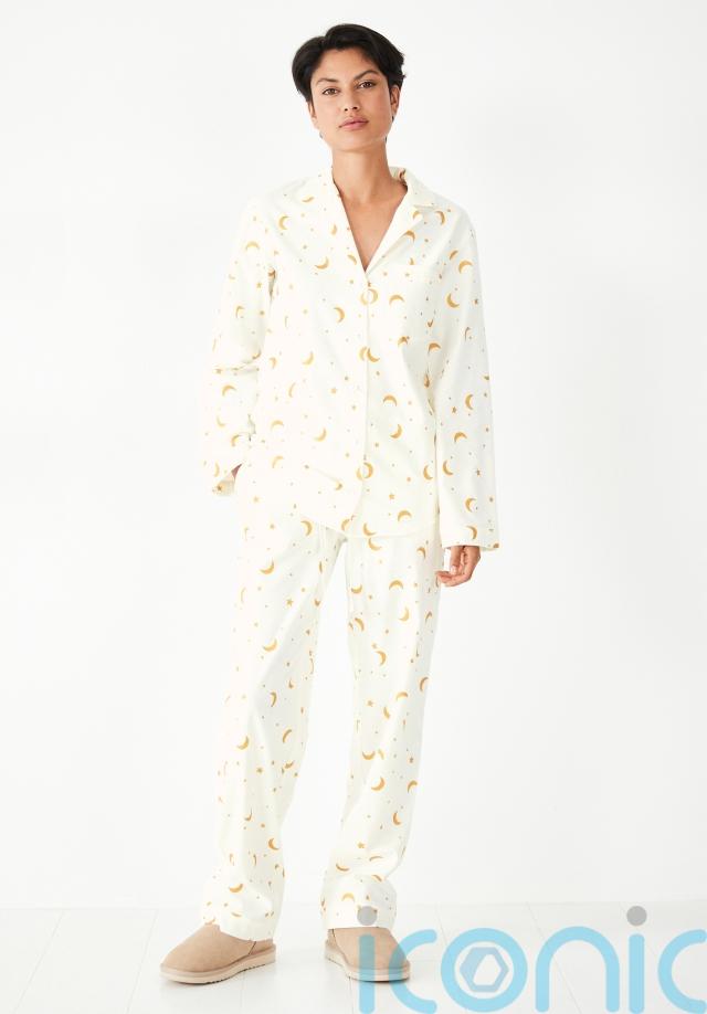 Hush Liv Cotton Flannel Pyjamas in Moon Stars Ecru/Gold, £59