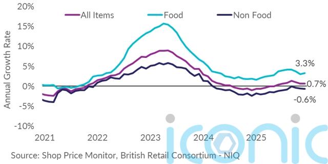 Food inflation increased to 3.3%, up from November’s 3% and far outstripping wider shop price inflation of 0.7%, according to the British Retail Consortium (BRC) and NIQ data.