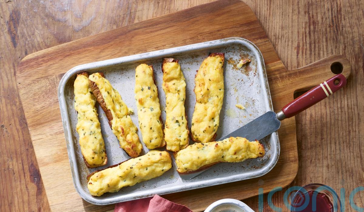 3. Mash the cooked parsnip with the butter, Parmesan and chives, taste and season with salt and pepper. Divide the parsnip mash between the parsnip shells, then slice each in half and lay them onto a tray, ready to be reheated. To reheat, place them in the oven for 15 minutes.