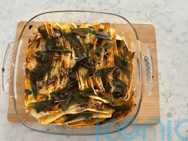 Another night I rustle up Oliver’s roasted squash lasagne, with chestnuts, taleggio and crispy sage, for a family dinner – the autumnal ingredient combination sounds delicious, but I do have trouble getting hold of one of the five. Taleggio, a mild Italian semisoft, wash-rind cow’s milk cheese, wasn’t in a large supermarket or cheesemonger – who suggested a French Mont des Cats instead.