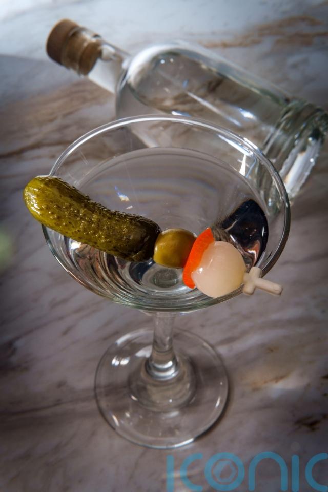 Make a classic dirty martini (usually: 150ml gin, 25ml dry vermouth, 25ml olive brine plus a garnish of olives), but instead of using olives and olive brine, swap in gherkins and brine from the bottle. You want this VERY cold – keep your gin and vermouth in the freezer if possible.