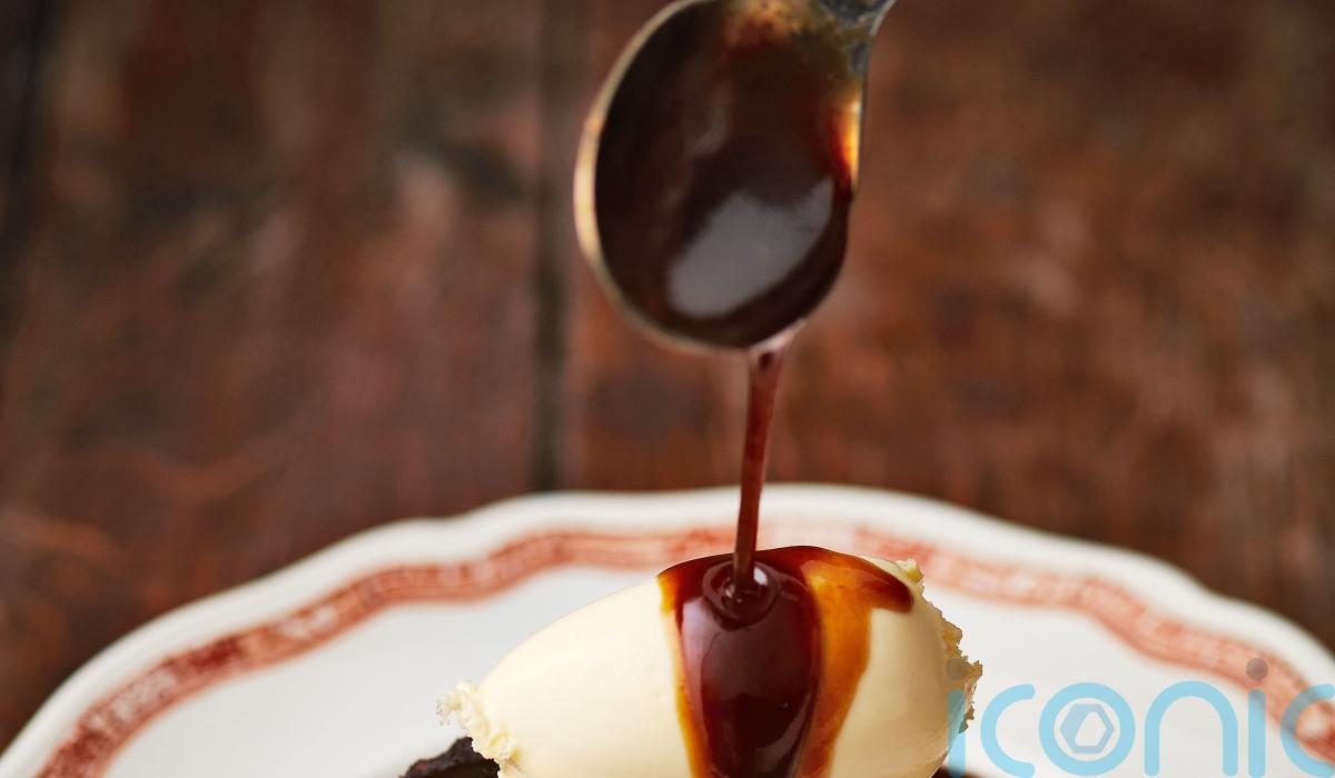 5. Meanwhile, to make the toffee sauce, put all the ingredients into a pan and bring gently to the boil, stirring until blended, then take off the heat.