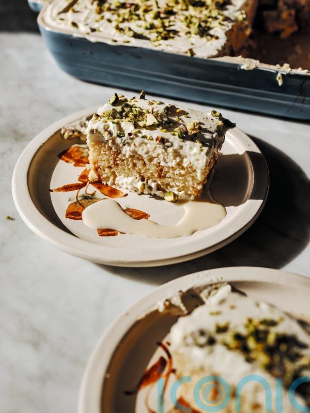 “This is my take on the classic Latin American dessert, but infused with Somali tea spices like cardamom, cinnamon and clove. That warmth completely transforms the milk mixture, and it’s one of those recipes I shared online that really took off,” says food writer Ilhan Mohamed Abdi. “So many people tried it and made it their own – which makes it feel all the more special to me. I usually keep it simple and use store-bought madeira cake, but doolsho [cardamom sponge cake] works beautifully too. It’s the kind of dessert you can prep the night before, and just before serving, pour over a little saved milk to freshen it up. Now, it’s become the thing people expect from me. The same way you’d expect tea and biscuits at someone’s house, my guests expect Somali tres leches. And truthfully, I enjoy making it every time.”