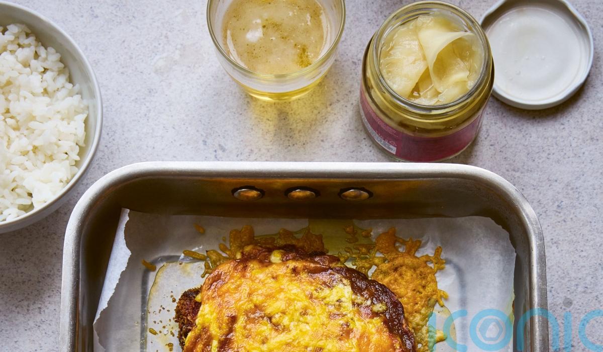9. Transfer the chicken to a wire rack set over a roasting tray. Spoon a generous amount of the curry sauce onto each chicken cutlet, then cover them in grated cheese and slide under the grill. Cook for about five minutes until the cheese is fully melted, bubbly and beginning to brown.