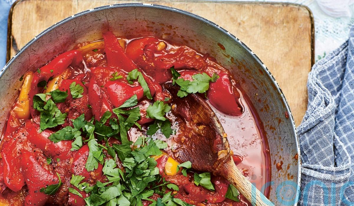 “These slow-cooked peppers are so intensely sweet, I guarantee they’ll stop you in your tracks,” says Georgina Hayden, author of new plant-based cookbook, Nistisima.