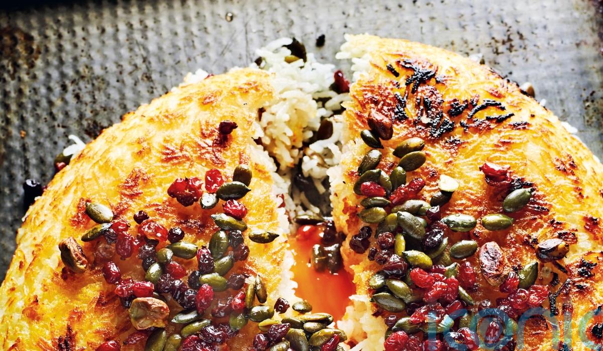 “Tahdig (pronounced tah-deeg) is a Persian dish that translates to ‘bottom of the pot’, a reference to the crunchy golden-brown layer of rice that forms at the bottom of the pan,” explains chef Josh Katz.