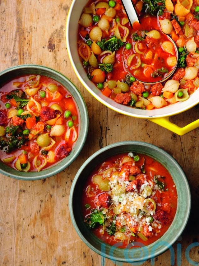“Swap the chorizo for bacon, add beans or lentils, use only veg – anything goes,” says Tom Kerridge. “If you roughly follow these ratios of veg, chicken stock and pasta, it will always taste delicious.”