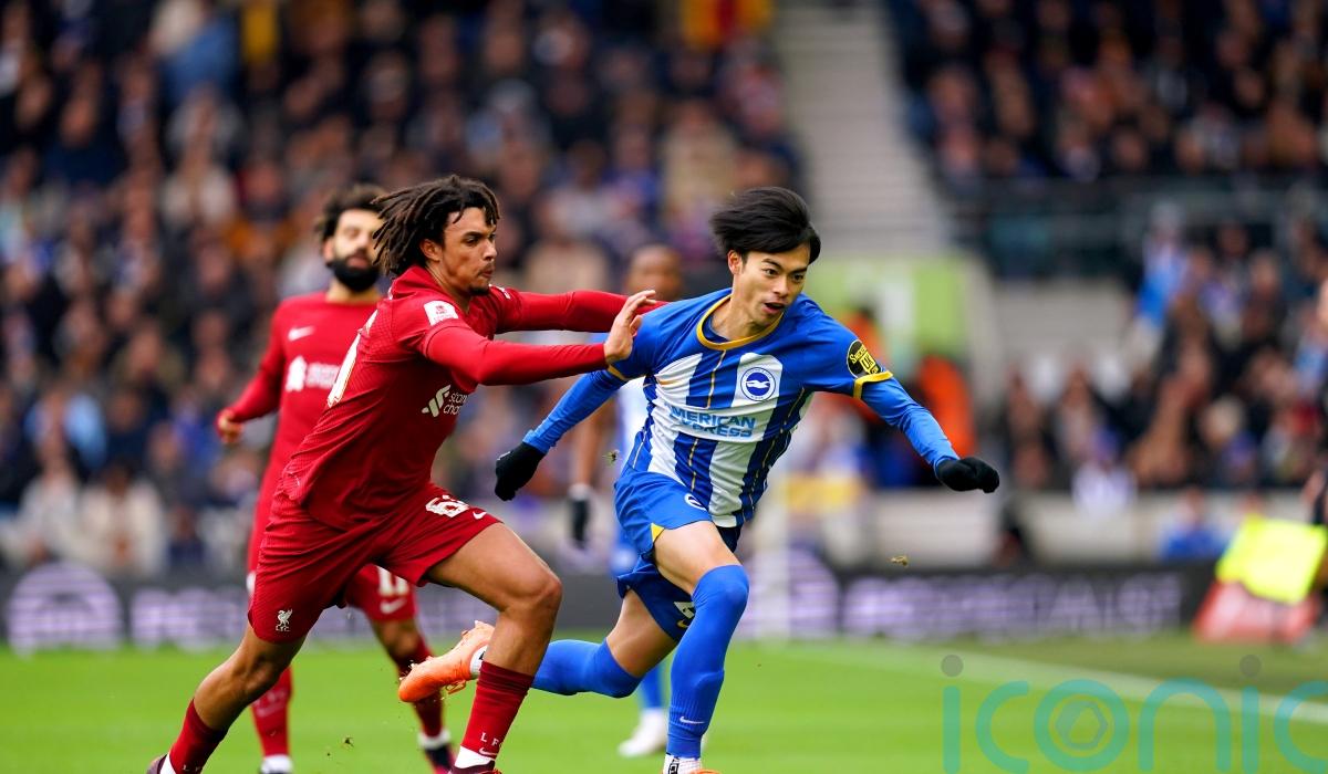 Ten minutes later Brighton also had an effort blocked on the line when Solly March’s low cross was met by Evan Ferguson six yards out, with Trent Alexander-Arnold on hand to clear from under the crossbar.