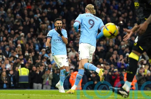 Guardiola did not seem happy about the on-field discussions which led to Mahrez taking the penalty rather than first-choice taker Haaland.